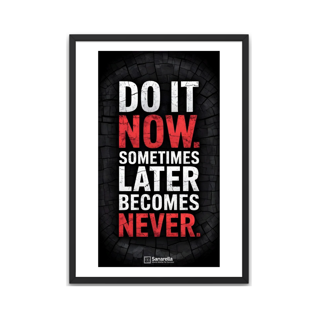 Turn your walls into a source of strength and inspiration with this motivational quote frame. Featuring the empowering words “Do It Now Sometimes Later Becomes Never”, this frame is more than just décor – it’s a daily reminder to stay bold, break barriers, and eliminate excuses on your path to success.