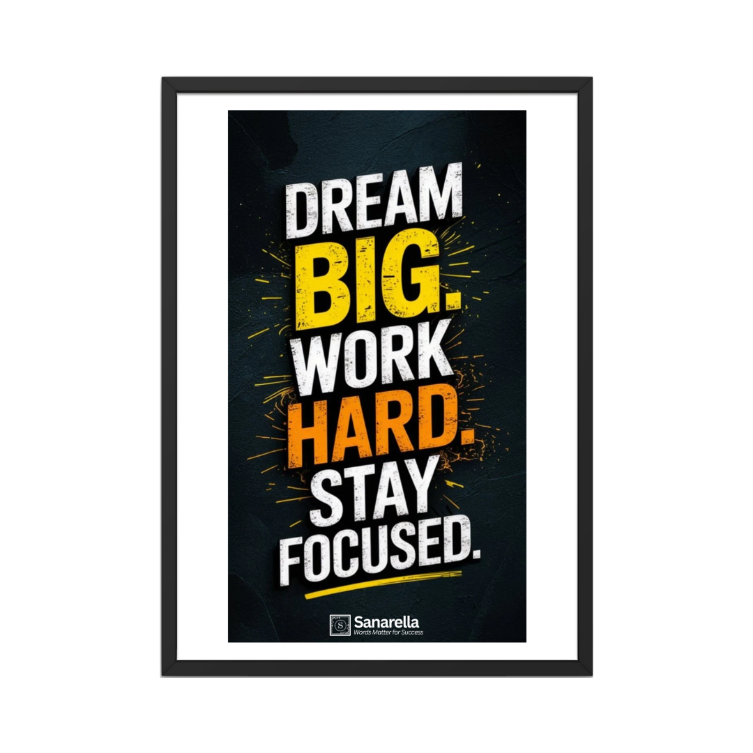 Turn your walls into a source of strength and inspiration with this motivational quote frame. Featuring the empowering words “Dream Big. Work Hard. Stay Focused”, this frame is more than just décor – it’s a daily reminder to stay bold, break barriers, and eliminate excuses on your path to success.