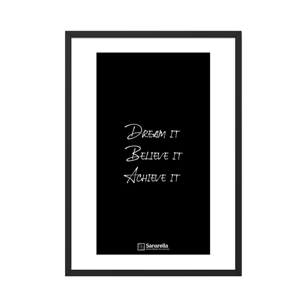 Turn your walls into a source of strength and inspiration with this motivational quote frame. Featuring the empowering words “Dream it, Believe it, Achieve it”, this frame is more than just décor – it’s a daily reminder to stay bold, break barriers, and eliminate excuses on your path to success.