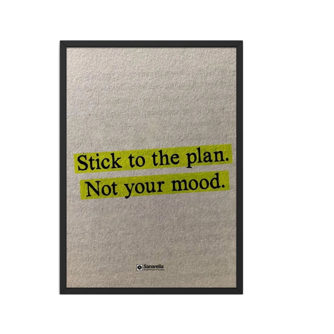 Turn your walls into a source of strength and inspiration with this motivational quote frame. Featuring the empowering words “Stick to your plan not your mood”, this frame is more than just décor – it’s a daily reminder to stay bold, break barriers, and eliminate excuses on your path to success.